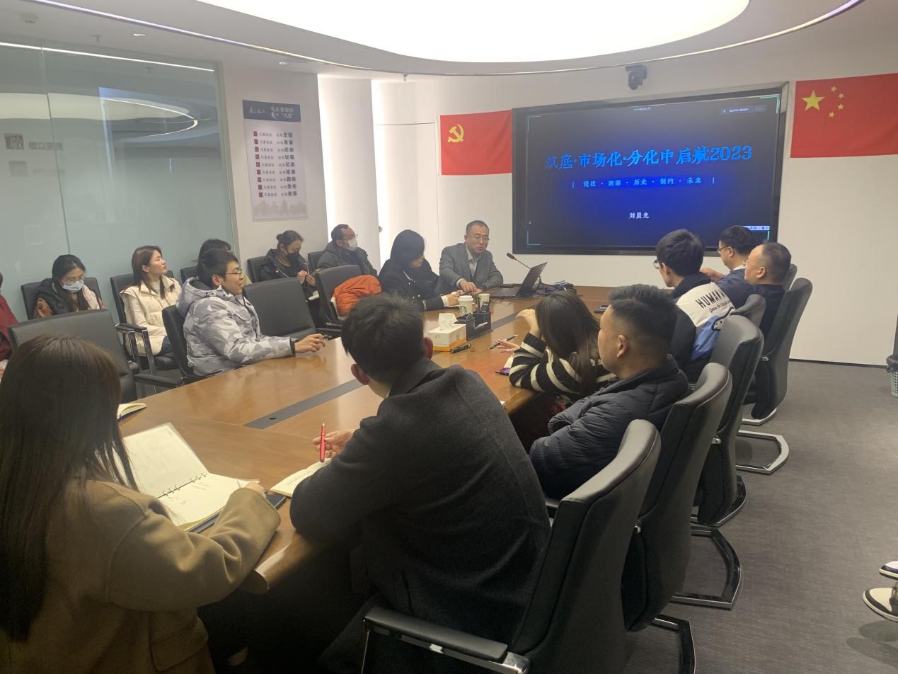 為更好認(rèn)識房地產(chǎn)變局之下行業(yè)發(fā)展現(xiàn)狀及預(yù)期,切實提升行業(yè)知識水平,明確2023年公司投資業(yè)務(wù)的發(fā)展方向,2月24日下午,盛和房產(chǎn)組織召開《行業(yè)總結(jié)與市場研判》分享交流會。特邀資深戰(zhàn)略定位與管理咨詢專家——上海克而瑞信息技術(shù)有限公司企業(yè)戰(zhàn)略部總經(jīng)理劉晨光作專題輔導(dǎo)。盛和房產(chǎn)及全資、控股子公司全體員工參加。